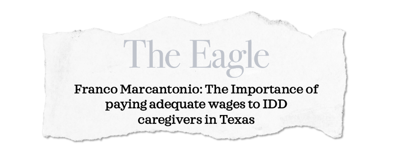 Writing in the Bryan-College Station Eagle, Marcantonio details the challenges that families of Texans with IDD face when seeking care options in their communities, particularly when persistently low wages have driven many DSPs to seek employment elsewhere: