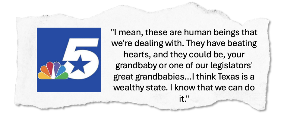 Dr. Caudy delivered a clear message to the Texas Legislature: with a $24 billion budget surplus on the table, lawmakers and budget writers must prioritize making a meaningful investment in services to support Texas’ most vulnerable population: